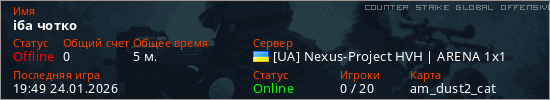 Играет на Counter Strike Global Offensive сервере. Страна: УкраинаПервый раз замечен 19:30 24.01.2026