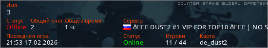 Последний раз был в сети 21:53 17.02.2026 Игрок с таким ником замечен на 20 серверах