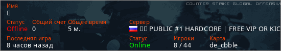 Играет на Counter Strike Global Offensive сервере. Страна: РоссияПервый раз замечен 20:24 15.03.2026