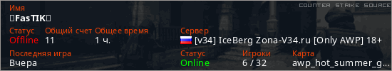 Последний раз был в сети Вчера Игрок с таким ником замечен на 18 серверах