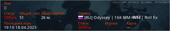 Играет на Counter Strike Global Offensive сервере. Страна: РоссияПервый раз замечен 13:55 14.04.2025