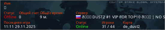 Играет на Counter Strike Global Offensive сервере. Страна: РоссияПервый раз замечен 21:41 28.11.2025