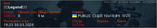 Играет на Counter Strike Global Offensive сервере. Страна: УкраинаПервый раз замечен 20:07 29.03.2026