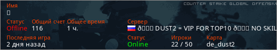 Играет на Counter Strike Global Offensive сервере. Страна: РоссияПервый раз замечен 21:29 17.01.2025