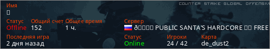 Играет на Counter Strike Global Offensive сервере. Страна: РоссияПервый раз замечен 09:37 02.03.2025