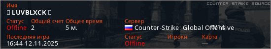 Играет на Counter Strike Source сервере. Страна: РоссияПервый раз замечен 16:32 12.11.2025