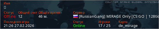 Играет на Counter Strike Global Offensive сервере. Страна: РоссияПервый раз замечен 03:02 22.02.2026