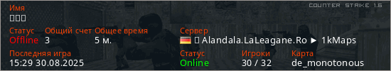 Последний раз был в сети 15:29 30.08.2025 Игрок с таким ником замечен на 3 серверах