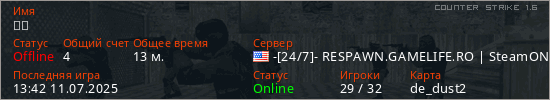 Играет на Counter Strike 1.6 сервере. Страна: СШАПервый раз замечен 13:15 11.07.2025