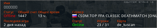 Играет на Counter Strike 1.6 сервере. Страна: РоссияПервый раз замечен 01:00 16.07.2024