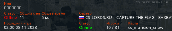 Играет на Counter Strike 1.6 сервере. Страна: РоссияПервый раз замечен 01:36 08.11.2023