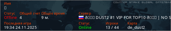 Играет на Counter Strike Global Offensive сервере. Страна: РоссияПервый раз замечен 00:00 13.05.2025