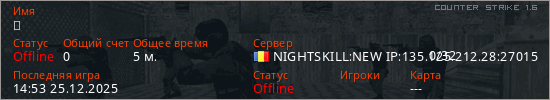 Играет на Counter Strike 1.6 сервере. Страна: РумынияПервый раз замечен 14:51 25.12.2025