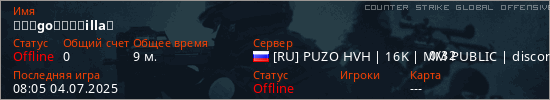 Играет на Counter Strike Global Offensive сервере. Страна: РоссияПервый раз замечен 11:21 02.07.2025