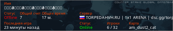 Играет на Counter Strike Global Offensive сервере. Страна: РоссияПервый раз замечен 15:08 18.04.2026