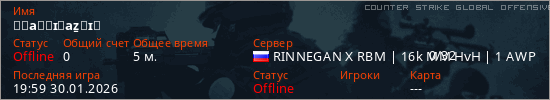 Играет на Counter Strike Global Offensive сервере. Страна: РоссияПервый раз замечен 19:57 30.01.2026