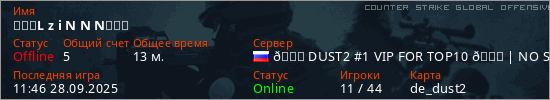 Играет на Counter Strike Global Offensive сервере. Страна: РоссияПервый раз замечен 22:28 12.04.2025