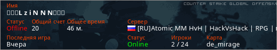 Играет на Counter Strike Global Offensive сервере. Страна: РоссияПервый раз замечен 22:28 22.01.2026
