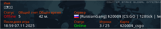 Играет на Counter Strike Global Offensive сервере. Страна: РоссияПервый раз замечен 18:52 28.10.2025