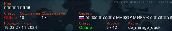 Играет на Counter Strike Global Offensive сервере. Страна: РоссияПервый раз замечен 08:58 18.11.2024