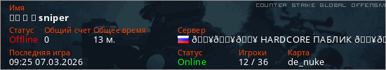 Играет на Counter Strike Global Offensive сервере. Страна: РоссияПервый раз замечен 21:45 01.02.2025