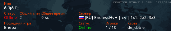 Играет на Counter Strike Global Offensive сервере. Страна: РоссияПервый раз замечен 15:13 03.12.2025