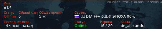 Играет на Counter Strike Global Offensive сервере. Страна: РоссияПервый раз замечен 12:07 05.03.2026