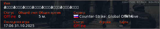 Играет на Counter Strike Source сервере. Страна: РоссияПервый раз замечен 16:59 31.10.2025