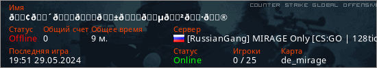 Общая информация игрока