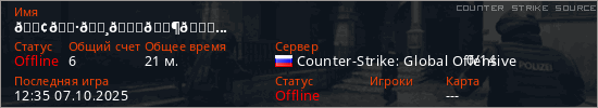 Играет на Counter Strike Source сервере. Страна: РоссияПервый раз замечен 19:07 04.09.2025