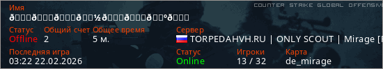 Последний раз был в сети 03:22 22.02.2026 Игрок с таким ником замечен на 8 серверах