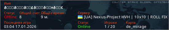 Играет на Counter Strike Global Offensive сервере. Страна: УкраинаПервый раз замечен 14:24 04.01.2026