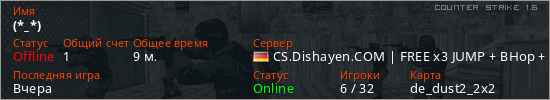 Последний раз был в сети Вчера Игрок с таким ником замечен на 31 сервере