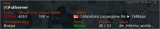 Последний раз был в сети Вчера Игрок с таким ником замечен на 23 серверах