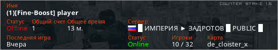 Последний раз был в сети Вчера Игрок с таким ником замечен на 40 серверах