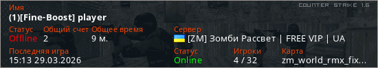 Играет на Counter Strike 1.6 сервере. Страна: УкраинаПервый раз замечен 17:55 24.03.2026