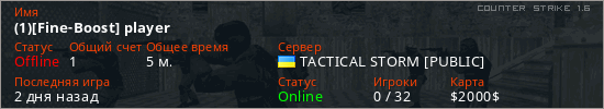 Играет на Counter Strike 1.6 сервере. Страна: УкраинаПервый раз замечен 14:11 22.02.2026