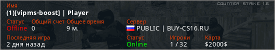 Играет на Counter Strike 1.6 сервере. Страна: РоссияПервый раз замечен 23:21 21.03.2026