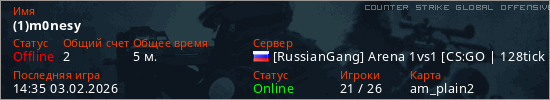 Играет на Counter Strike Global Offensive сервере. Страна: РоссияПервый раз замечен 13:55 03.02.2026