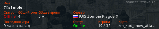 Играет на Counter Strike 1.6 сервере. Страна: РоссияПервый раз замечен 08:22 22.03.2026