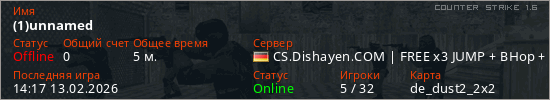 Играет на Counter Strike 1.6 сервере. Страна: ГерманияПервый раз замечен 13:58 13.02.2026