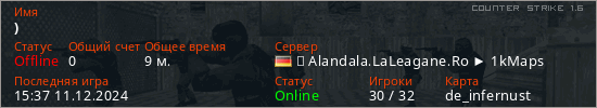Играет на Counter Strike 1.6 сервере. Страна: ГерманияПервый раз замечен 16:32 28.11.2024