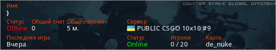 Играет на Counter Strike Global Offensive сервере. Страна: УкраинаПервый раз замечен 16:51 14.03.2026