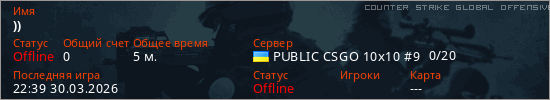 Играет на Counter Strike Global Offensive сервере. Страна: УкраинаПервый раз замечен 22:16 30.03.2026