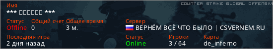 Играет на Counter Strike Global Offensive сервере. Страна: РоссияПервый раз замечен 02:14 25.03.2026