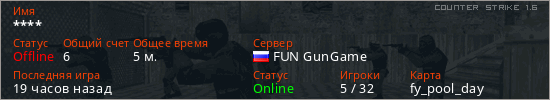 Последний раз был в сети 18 часов назад Игрок с таким ником замечен на 40 серверах