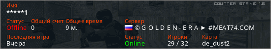 Играет на Counter Strike 1.6 сервере. Страна: РоссияПервый раз замечен 11:29 06.12.2025