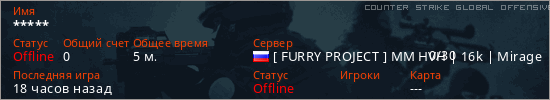 Играет на Counter Strike Global Offensive сервере. Страна: РоссияПервый раз замечен 09:35 28.02.2026