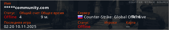 Играет на Counter Strike Source сервере. Страна: РоссияПервый раз замечен 01:21 10.11.2025