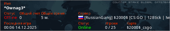 Играет на Counter Strike Global Offensive сервере. Страна: РоссияПервый раз замечен 00:04 14.12.2025